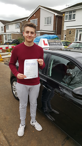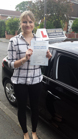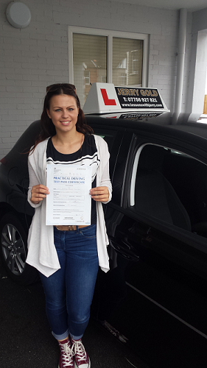I'd like to thank Jerry for giving me the confidence behind the wheel and helping me to pass first time, always a laugh in the car and would highly recommend him to any one of my friends!