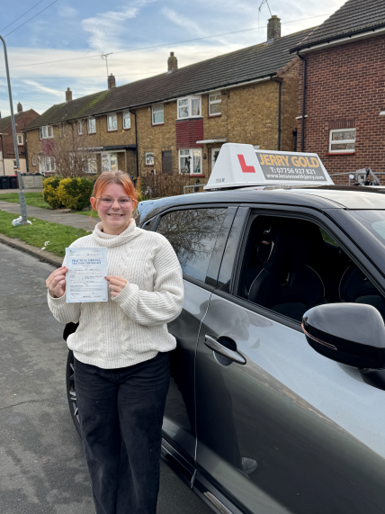 Where to even begin, I passed my driving test today because of Jerry. Without Jerrys patients, hard work and consistency with me, I would never had made it here today. I have been through a whirlwind whilst learning to drive, with the thought of giving up when the effort wasn't put in elsewhere and Jerry helped me right until the end, when he didn' need to. I have so many thanks to give Jerry and would persuade anyone to learn with him. He made me feel at ease every lesson, we laughed all the time and I saw him as a friend, not only whilst he was a customer at my job in the motor trade but also during my lessons. I can't thank Jerry enough for all he has done and certainly will miss our lessons. This isn't goodbye as I'm sure I'll see you around, letting cats across at the Zebra crossings! Ps I promise not to hold my breath when I'm a little scared anymore! Thank you again. Danielle.